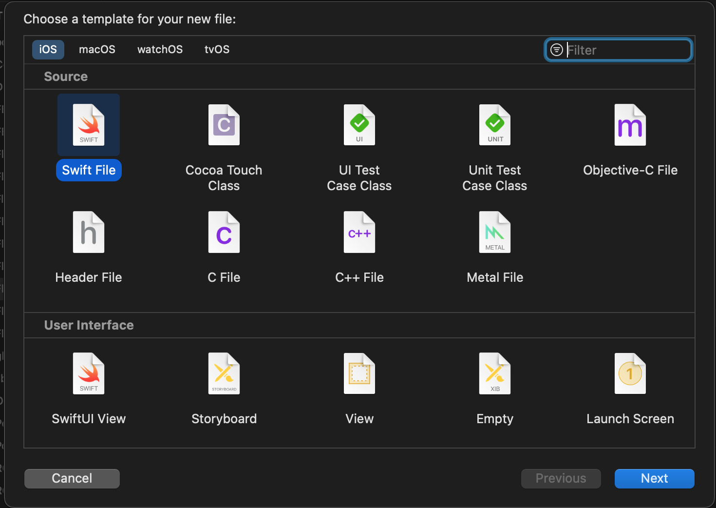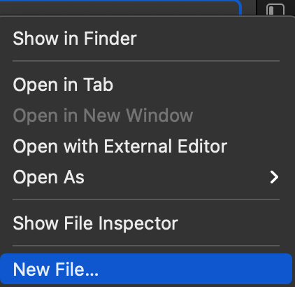 그래서 아래의 그림처럼 xcode를 키고, 프로젝트 폴더에 새로운 swift 파일을 생성해주면 문제를 해결할 수 있었다.
