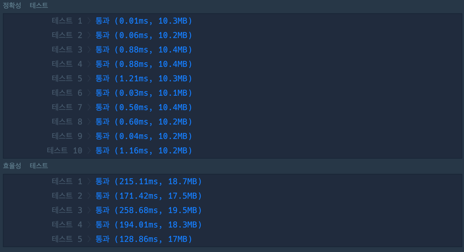효율성 테스트 1, 2, 3, 4를 모두 통과하지 못했다.