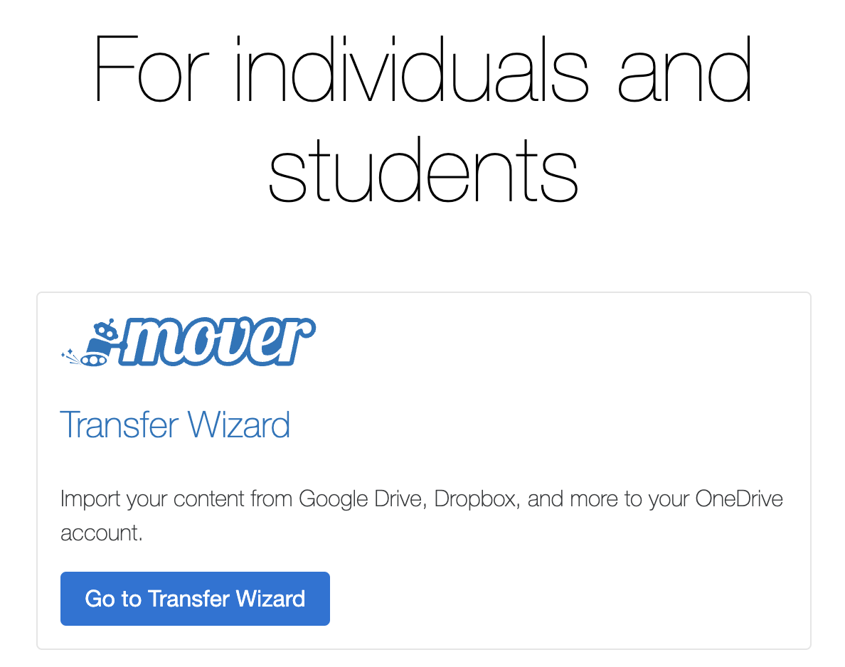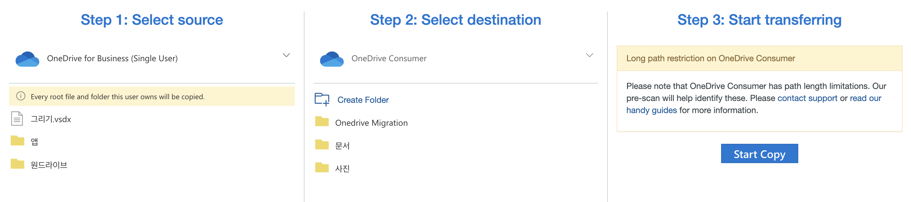 mover의 Transfer Wizard로 작업을 진행하면 되는데, 학교 계정이나 비즈니스 계정의 경우 OneDrive for Business (Single User)로 로그인하면 된다. 개인 계정의 경우 OneDrive Consumer로 연결을 진행하면 된다.