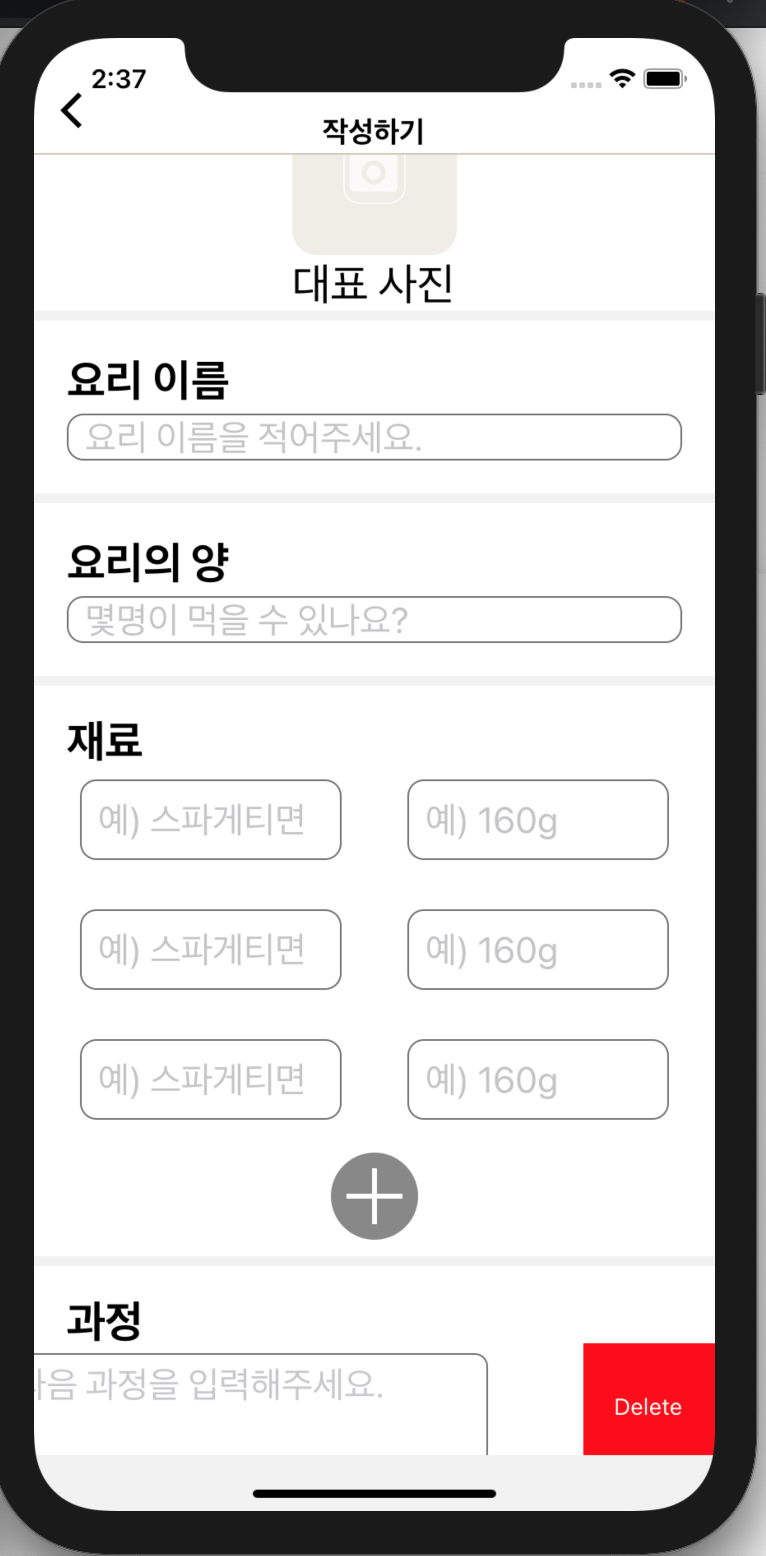 동아리 프로젝트 구현에 일주일 넘게 애를 먹고 있었다. 하지만 오늘 그동안 해결 못했던 것을 해결해서 기쁘다. 게시물 작성 페이지를 만들었는데, 스와이프 기능을 가지면서도, 동적으로 추가가 가능한 TextInput이 있어야 했다. 원래 react-native-swipe-list-view라는 라이브러리를 사용했었지만, 결국은 reanimated2를 사용했다. 라이브러리의 깃허브 레포지토리에 저장되어있는 예제가 나에게는 유용했다.